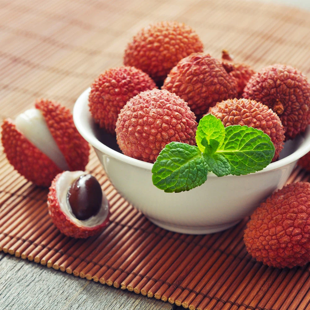 The Lychee fruit is perhaps its most unusual feature. It has sweet, delicate flesh and a creamy white inside. They go great alone as a snack or on salads. They’re so sweet, you won’t need a dressing for your salad.